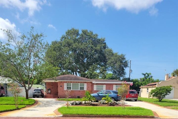 Queen bed n Bathroom at Casa De Ladrillos, St Pete